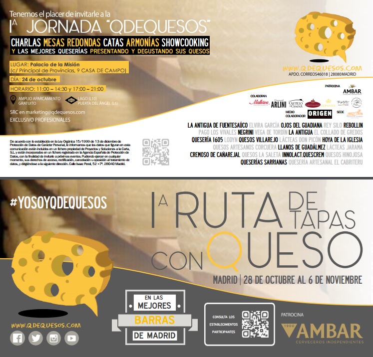 Reseña: En el mes de Octubre de 2016 pudimos asistir a la 1ª Jornada de Q de Quesos, donde se reunían diversidad de tipos de quesos. Había mucho donde elegir y probar, casi pudimos probar el 90% de quesos que se ofrecían en los diferentes stands.