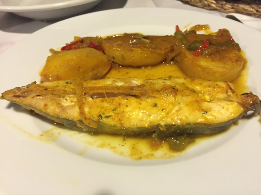 El Gallo San Pedro de punto estaba genial y rico, pero echamos en falta que el acompañamiento que llevaba se impregnara al propio gallo y crear un plato más en conjunto, parecía que la salsa y el acompañamiento iban por un lado y el Gallo San Pedro por el otro.