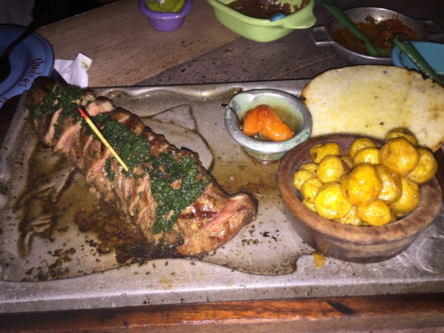Destacaría de entre todos los platos el Lomo al Trapo, con un sabor muy intenso en boca. El punto de la carne, poco hecho, era perfecto y la carne muy tierna. La Punta de anca en vino ajisoso (Asado a la parrilla con chimichurri, reduccion de vino y chiles asados) también es una de las carnes estrellas del local, muy rica también. La carne la habían pasado por la parrilla después de tenerla macerando en vino ajisoso, el cual le da un toque peculiar a la carne muy agradable, que se remata mojando un poquito de chimichurri.