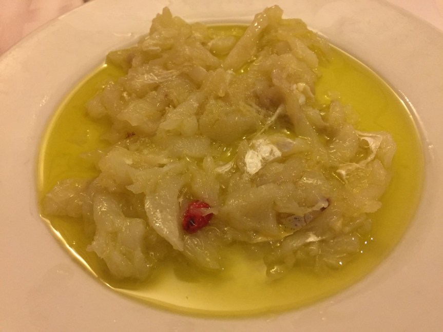 Carpaccio de Champiñón con aliño de mostaza-limón, queso Parmesano, avellanas y orégano: 8.5