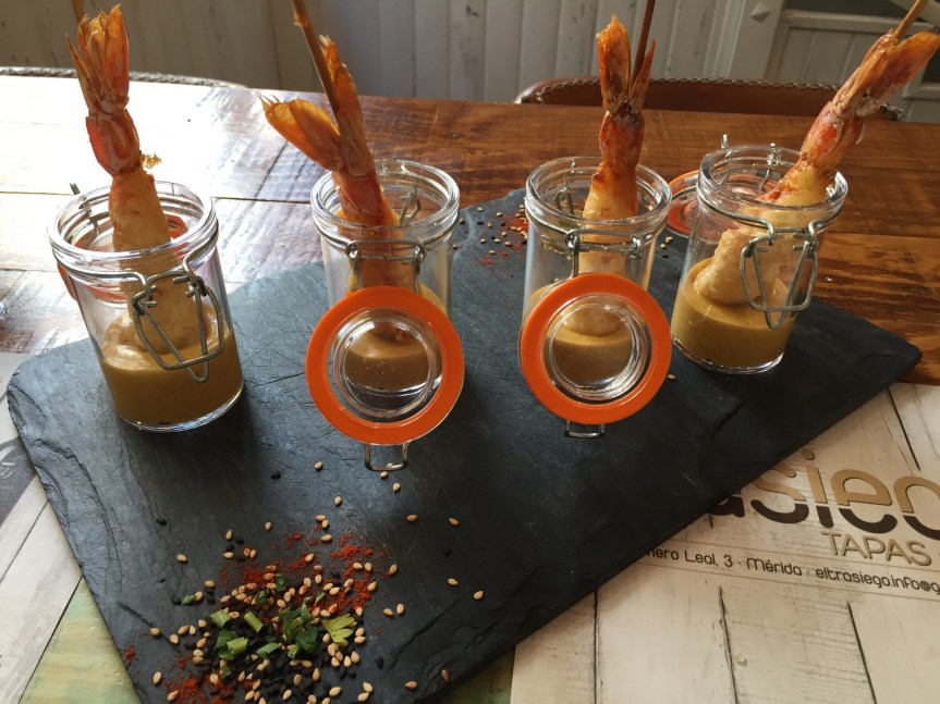 El primer asalto fue una Flor de calabacín en Tempura, rellena de Rebozuelo, albaricoque, frutos secos y queso crema, magnifico contraste entre la parte dulce y el rebozuelo.