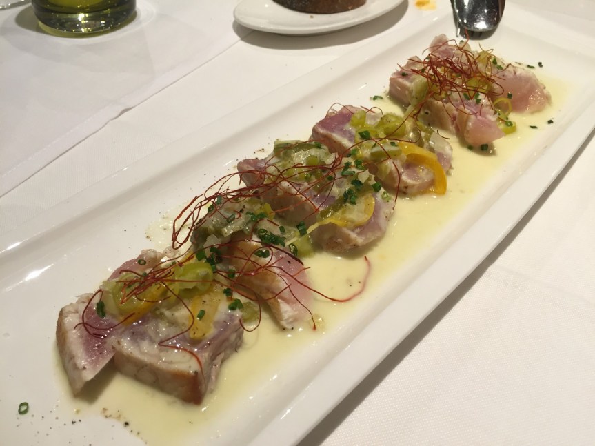 Son muchos platos, de ahí que nos centremos es los que más nos han gustado, sin menospreciar el resto. Vamos a empezar hablando de un postre, que es mejor como entrante para nuestro gusto, la Tarta de queso «que sabe a queso», como la denominan ellos, hecha en otros quesos con Idiazábal. Tiene un sabor a queso ultra potente, que no dejará indiferente a nadie, si te gusta el queso, este plato no debe faltar.