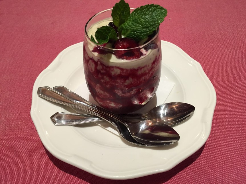 Por último, destacamos otro postre, el Milhojas de mousse de crema catalana con fruta de la pasión. Simplemente impresionante, los granos de las fruta de la pasión, entremezclados con la crema catalana, hacen que generen una explosión de sabor espectacular cada vez que te los encuentras.