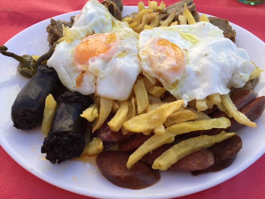 Plato de la Casa (Huevos Fritos, Lomo de orza, Costillas, Chorizo de orza, Morcilla, Patatas y Pimientos): 7.2
