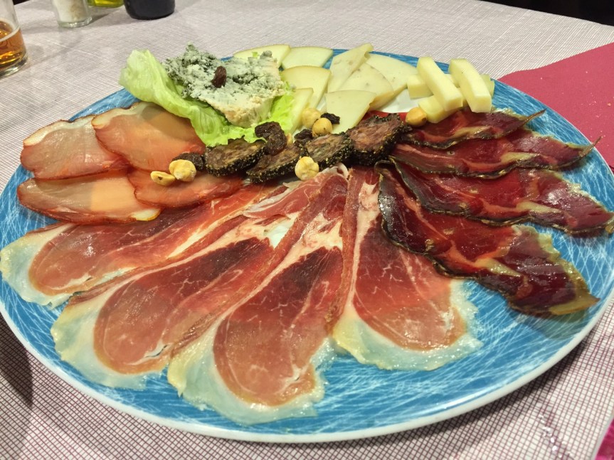 Reseña extendida: Empezamos con una ensalada de cogollos de Tudela, aguacate y ventresca de atún, aderezada con salsa casera a parte, hecha con soja, muy sabrosa. Seguimos con tabla de embutidos asturianos en la que pudimos degustar tres tipos de quesos y embutido de la zona, cecina, lomo y jamón; todo bastante bueno. Como plato principal de la cena comimos un ración de pulpo y chipirones a la gallega, que tenían un buen punto de cocción y aderezados con un pimentón picante muy agradable. Por último tomamos un flan de queso con muy buen sabor.